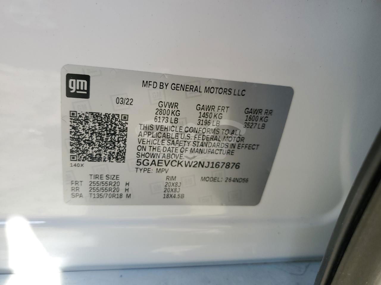 • VIN: 5GAEVCKW2NJ167876