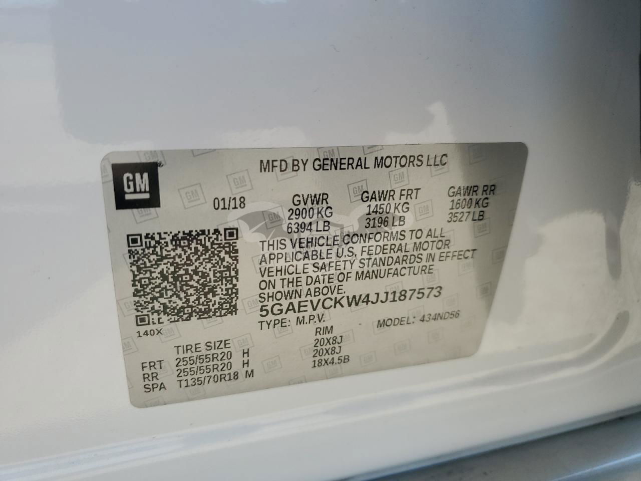 • VIN: 5GAEVCKW4JJ187573