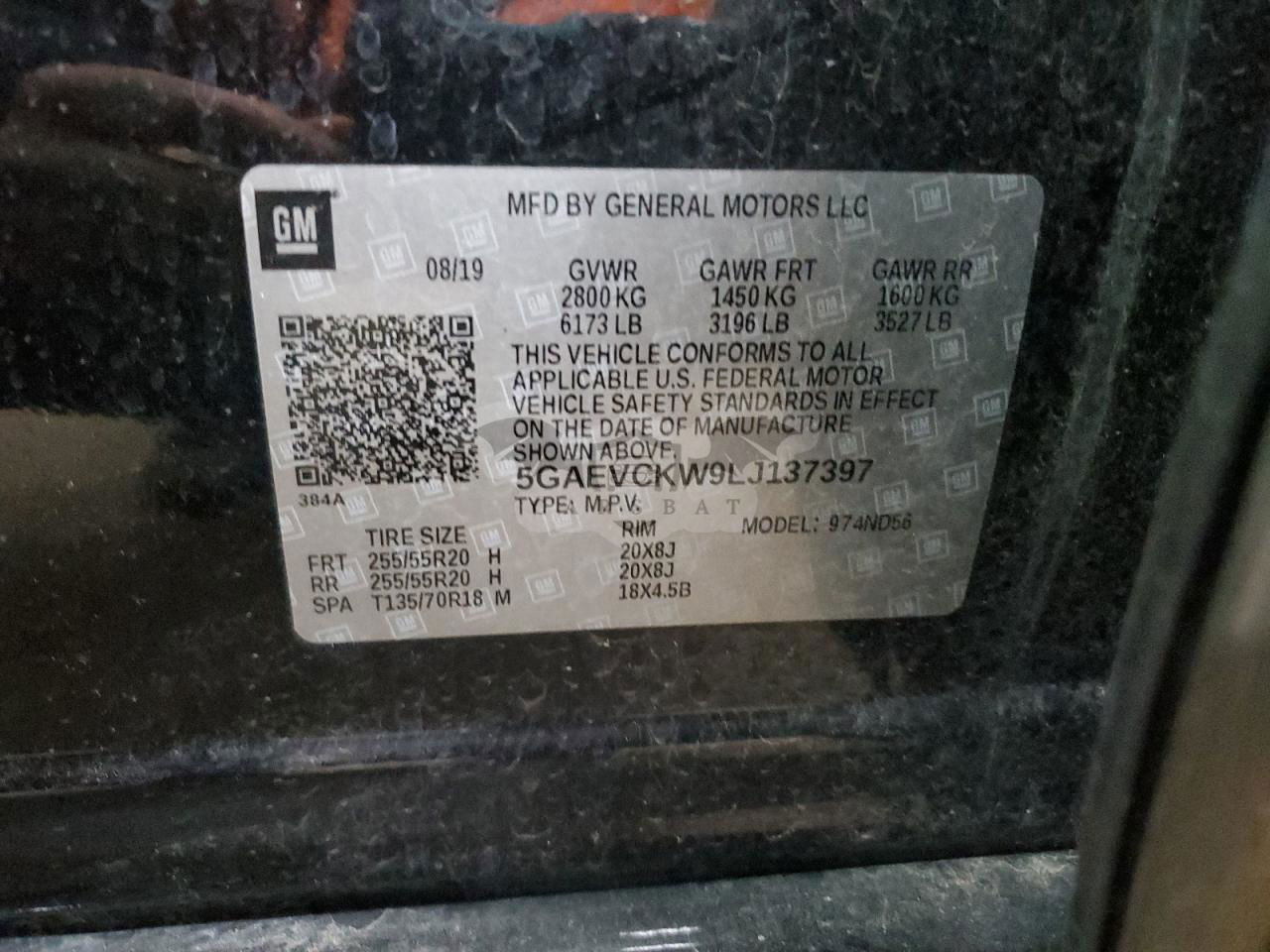 • VIN: 5GAEVCKW9LJ137397