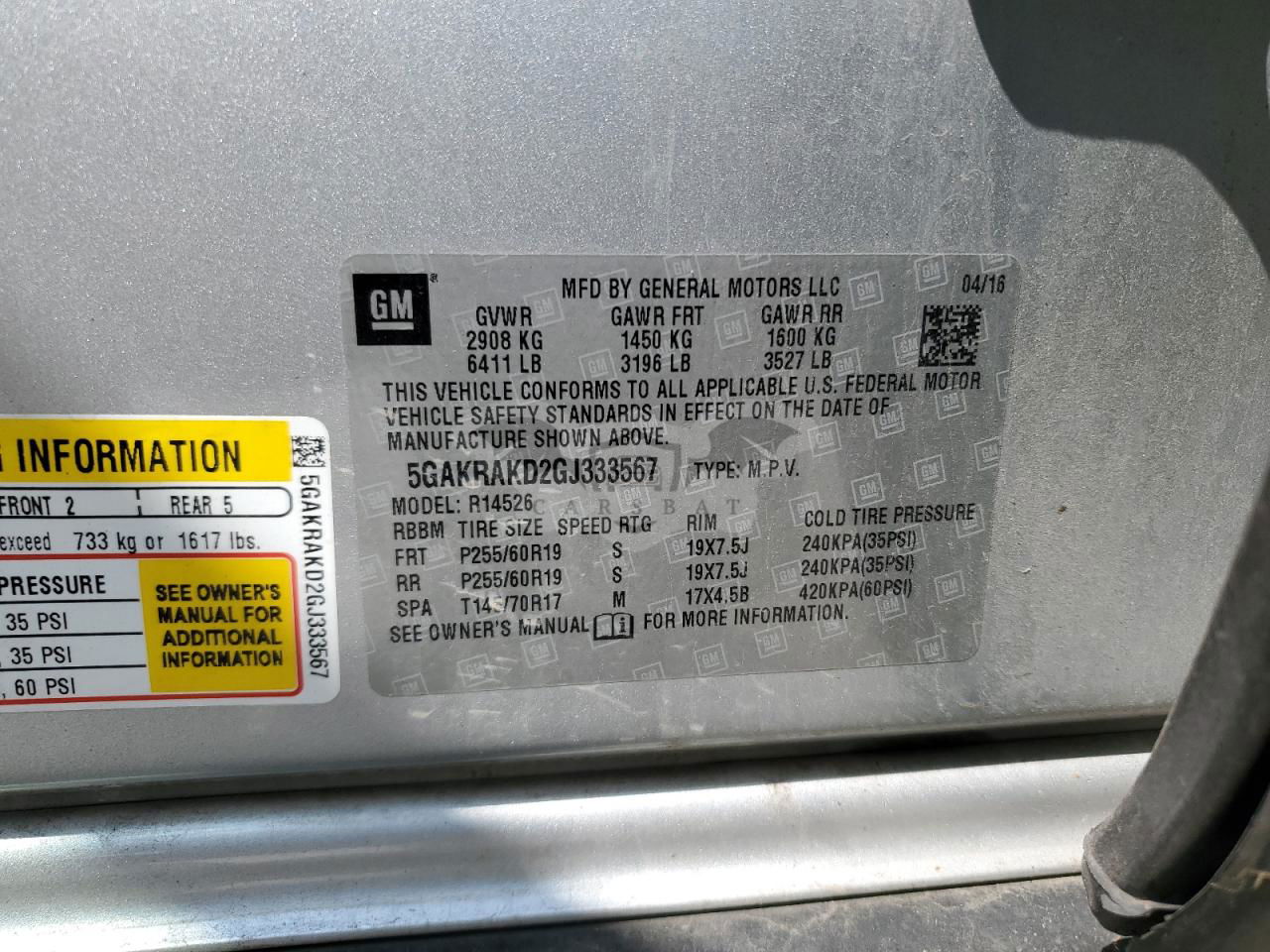• VIN: 5GAKRAKD2GJ333567