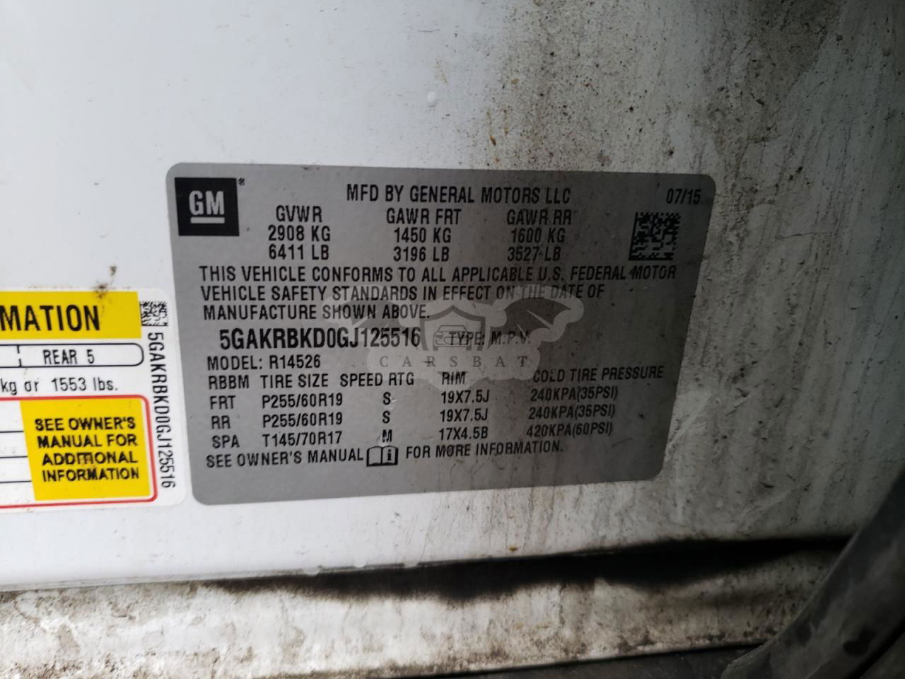 • VIN: 5GAKRBKD0GJ125516