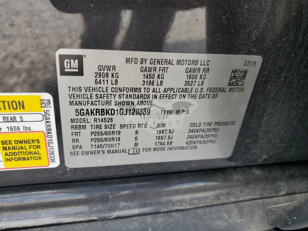 • VIN: 5GAKRBKD1GJ120339