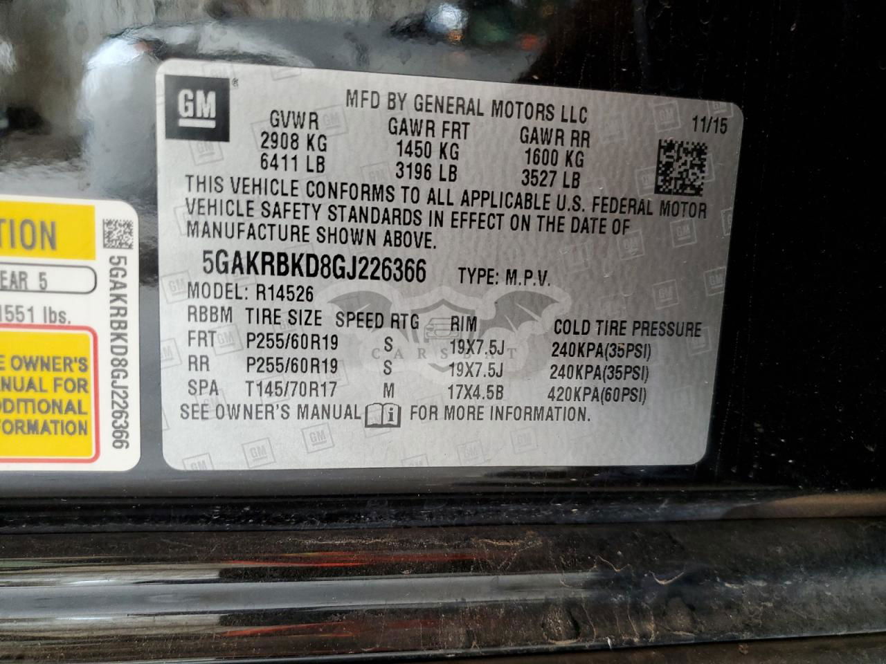 • VIN: 5GAKRBKD8GJ226366