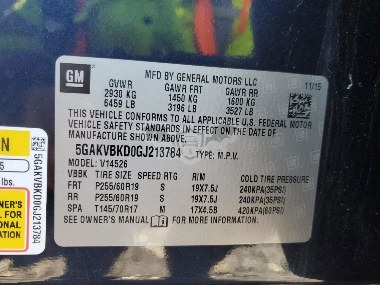 • VIN: 5GAKVBKD0GJ213784