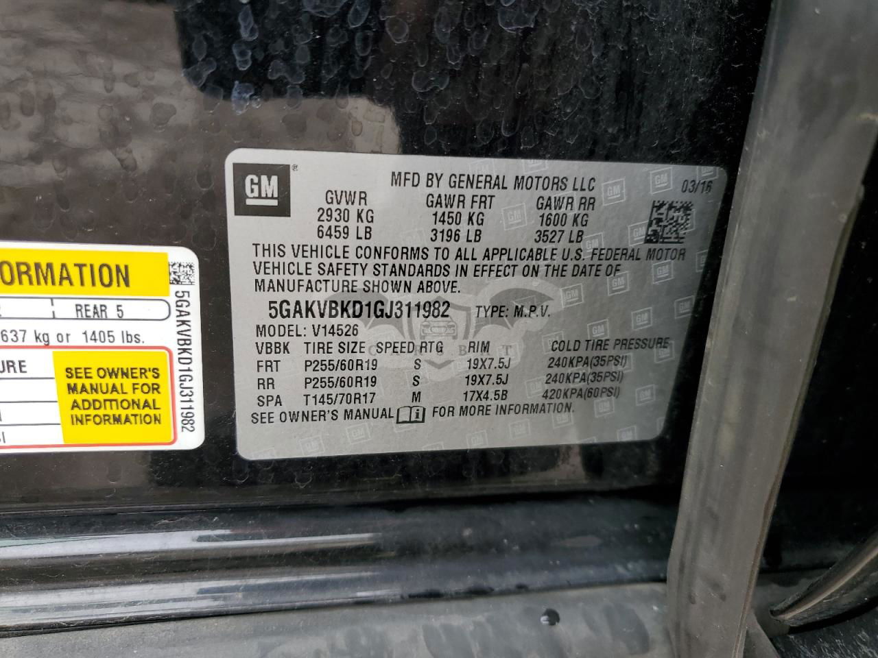• VIN: 5GAKVBKD1GJ311982