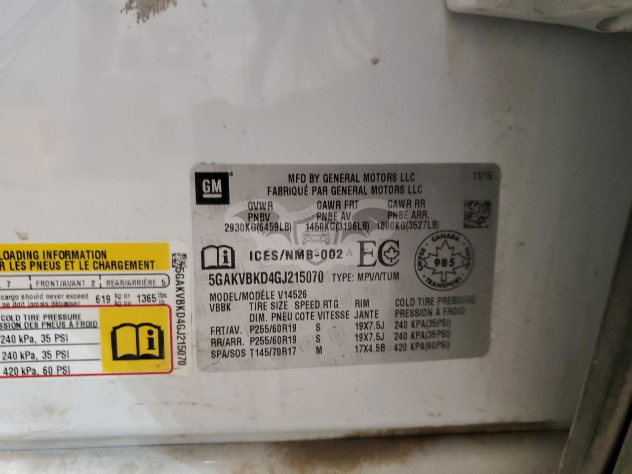 • VIN: 5GAKVBKD4GJ215070