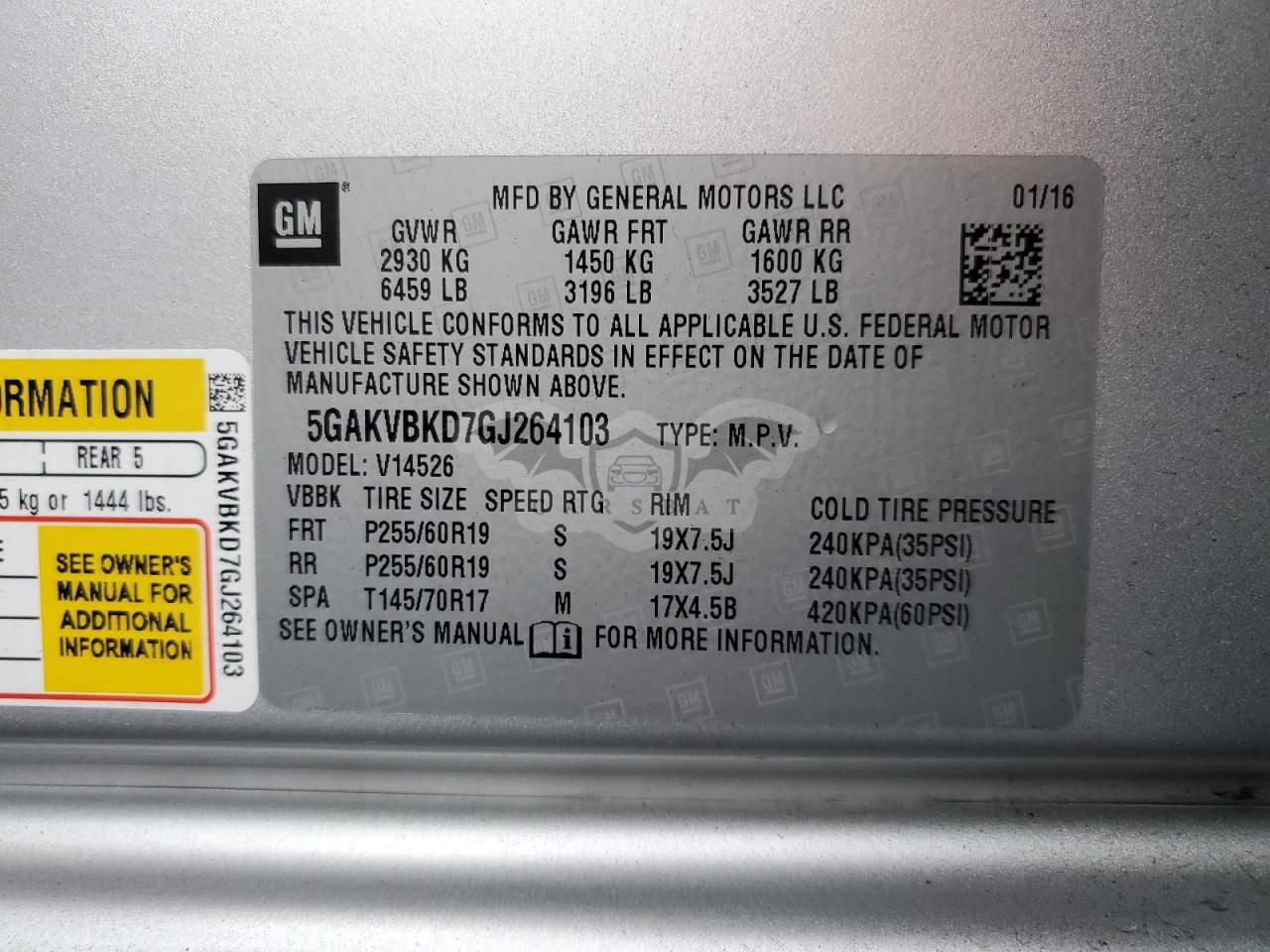 • VIN: 5GAKVBKD7GJ264103