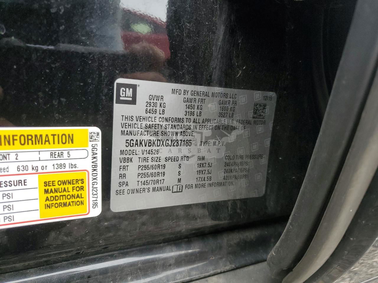 • VIN: 5GAKVBKDXGJ237185