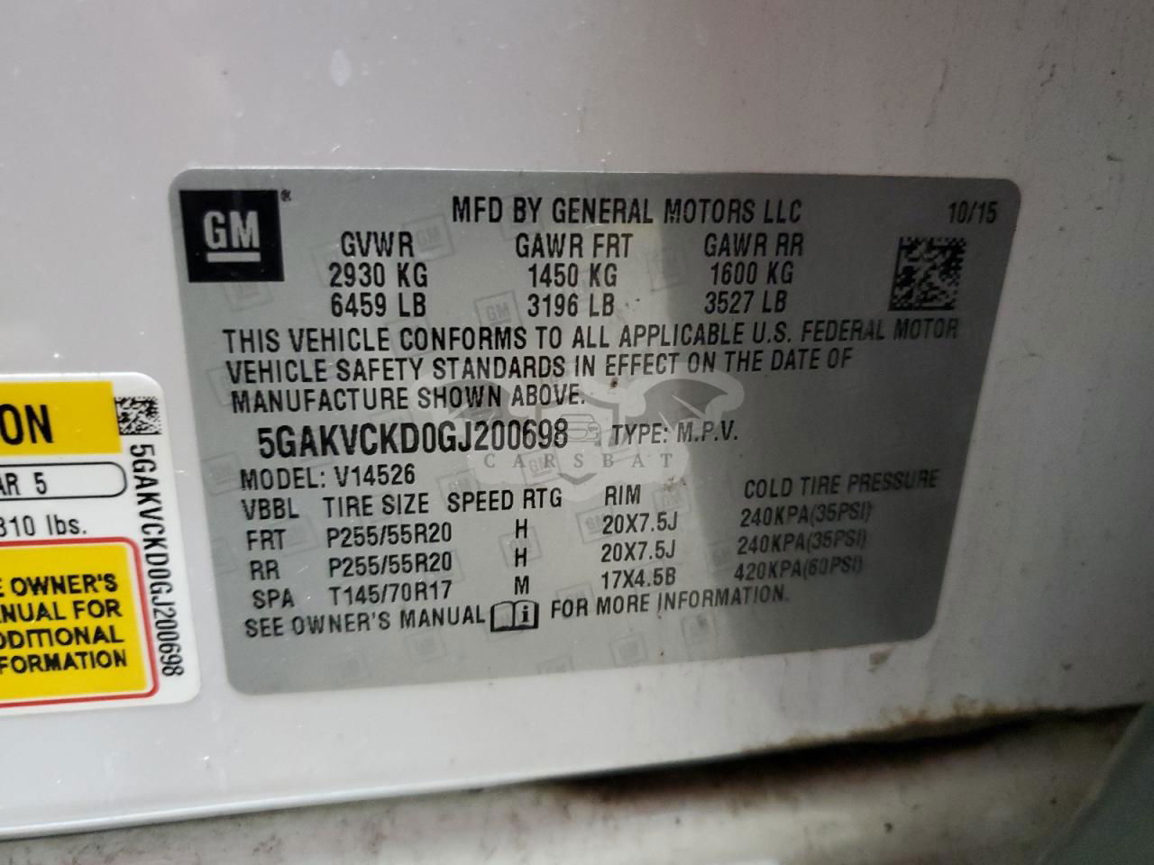 • VIN: 5GAKVCKD0GJ200698