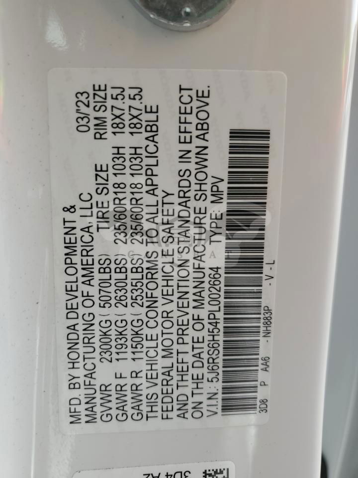 • VIN: 5J6RS6H54PL002664