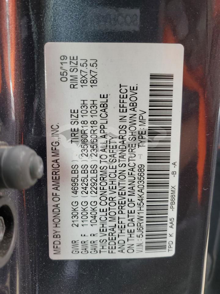 • VIN: 5J6RW1H54KA035689