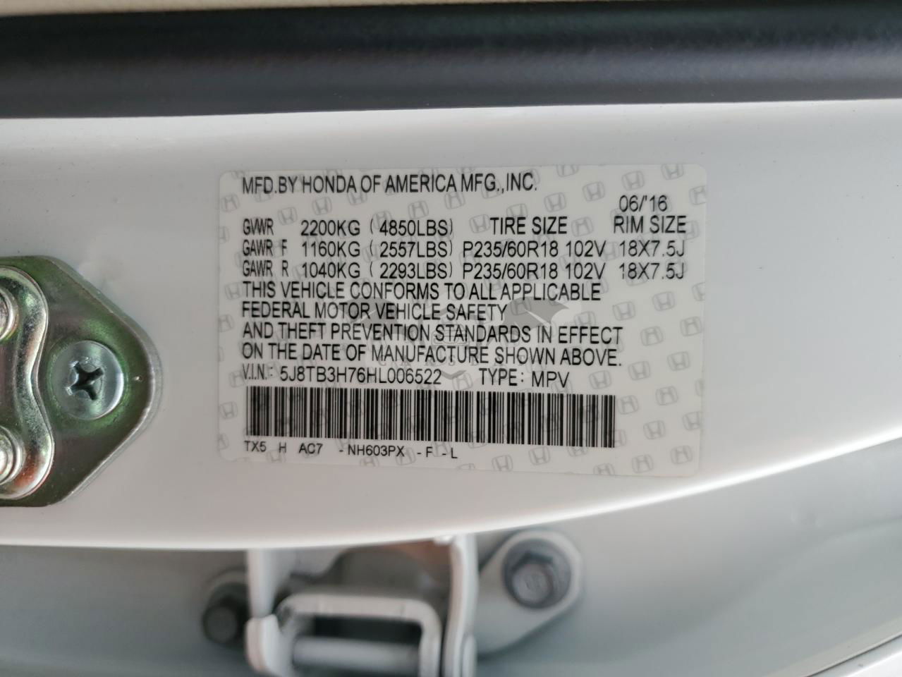 • VIN: 5J8TB3H76HL006522