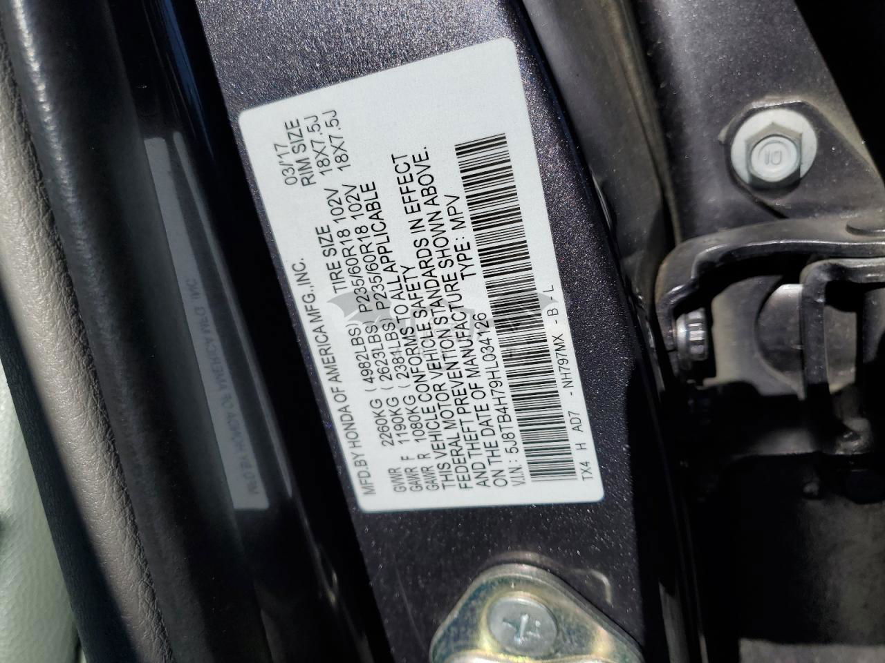 • VIN: 5J8TB4H79HL034126