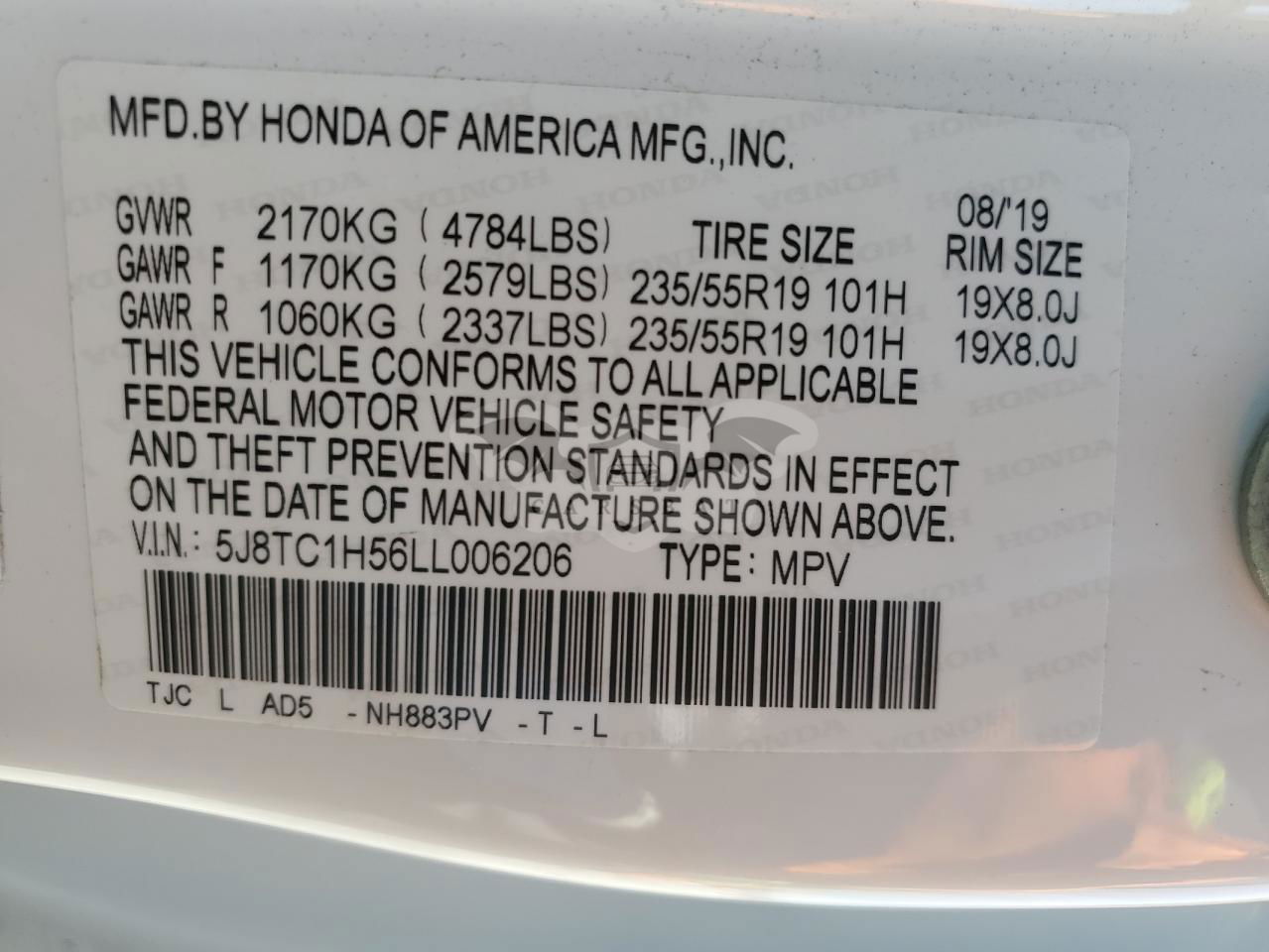 • VIN: 5J8TC1H56LL006206