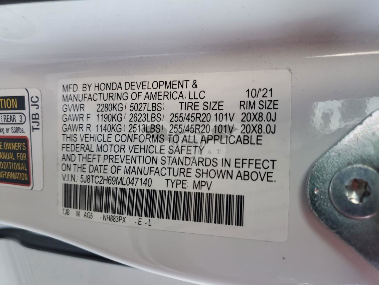 • VIN: 5J8TC2H69ML047140