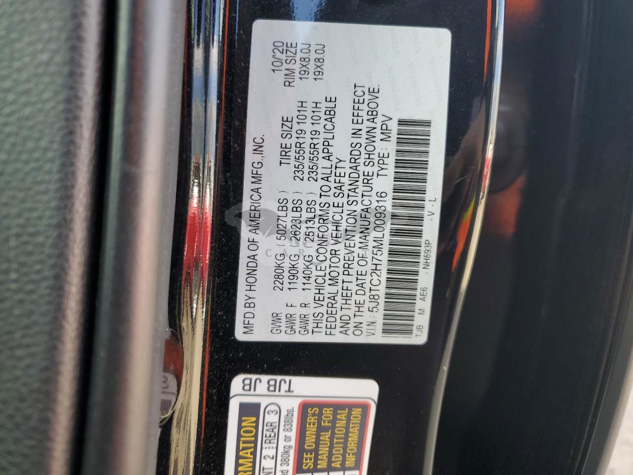 • VIN: 5J8TC2H75ML009316