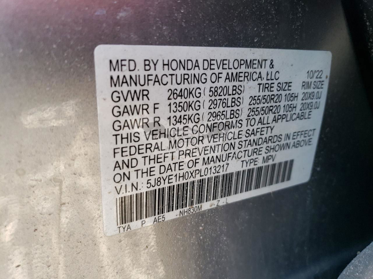 • VIN: 5J8YE1H0XPL013217