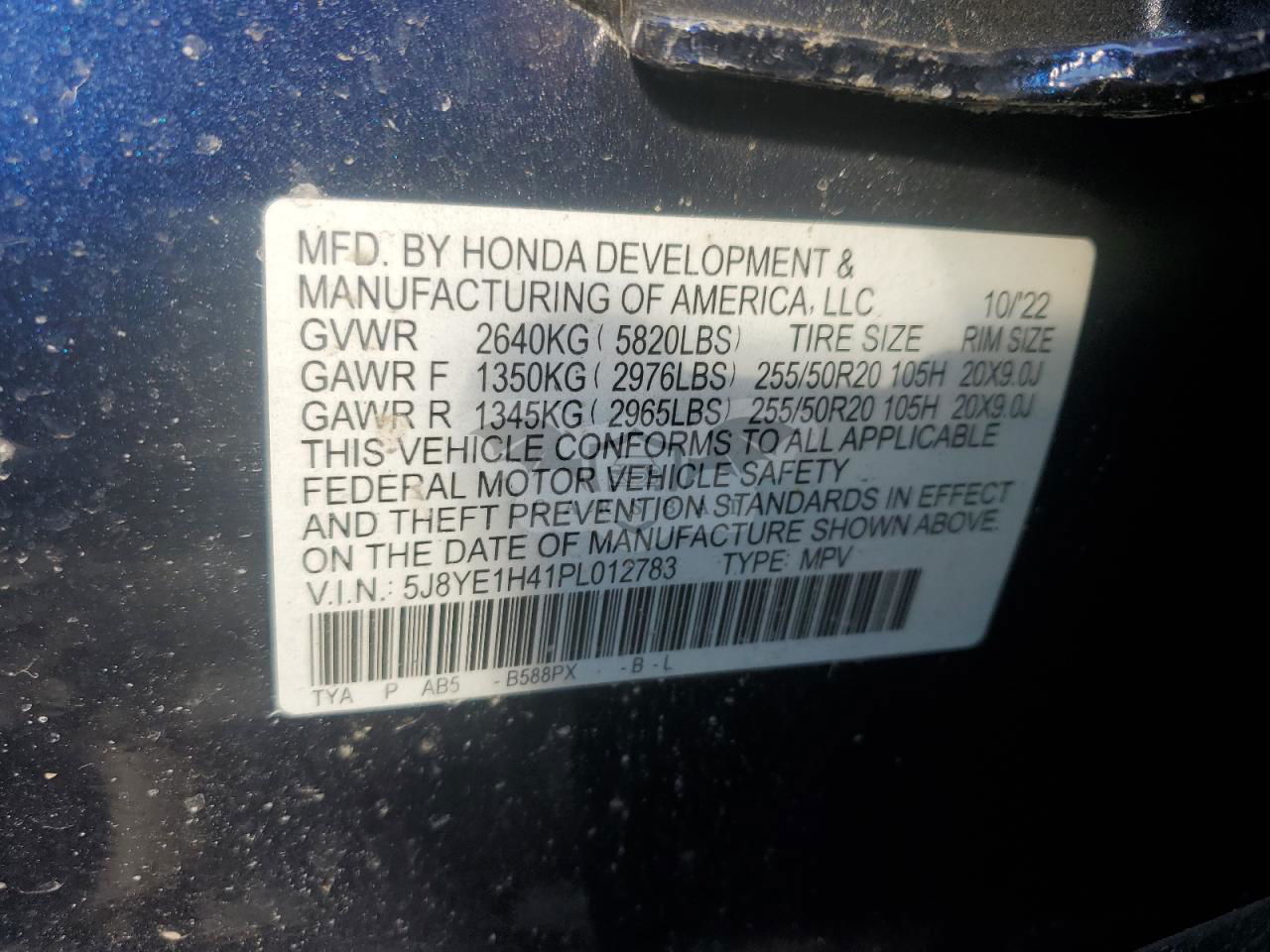 • VIN: 5J8YE1H41PL012783