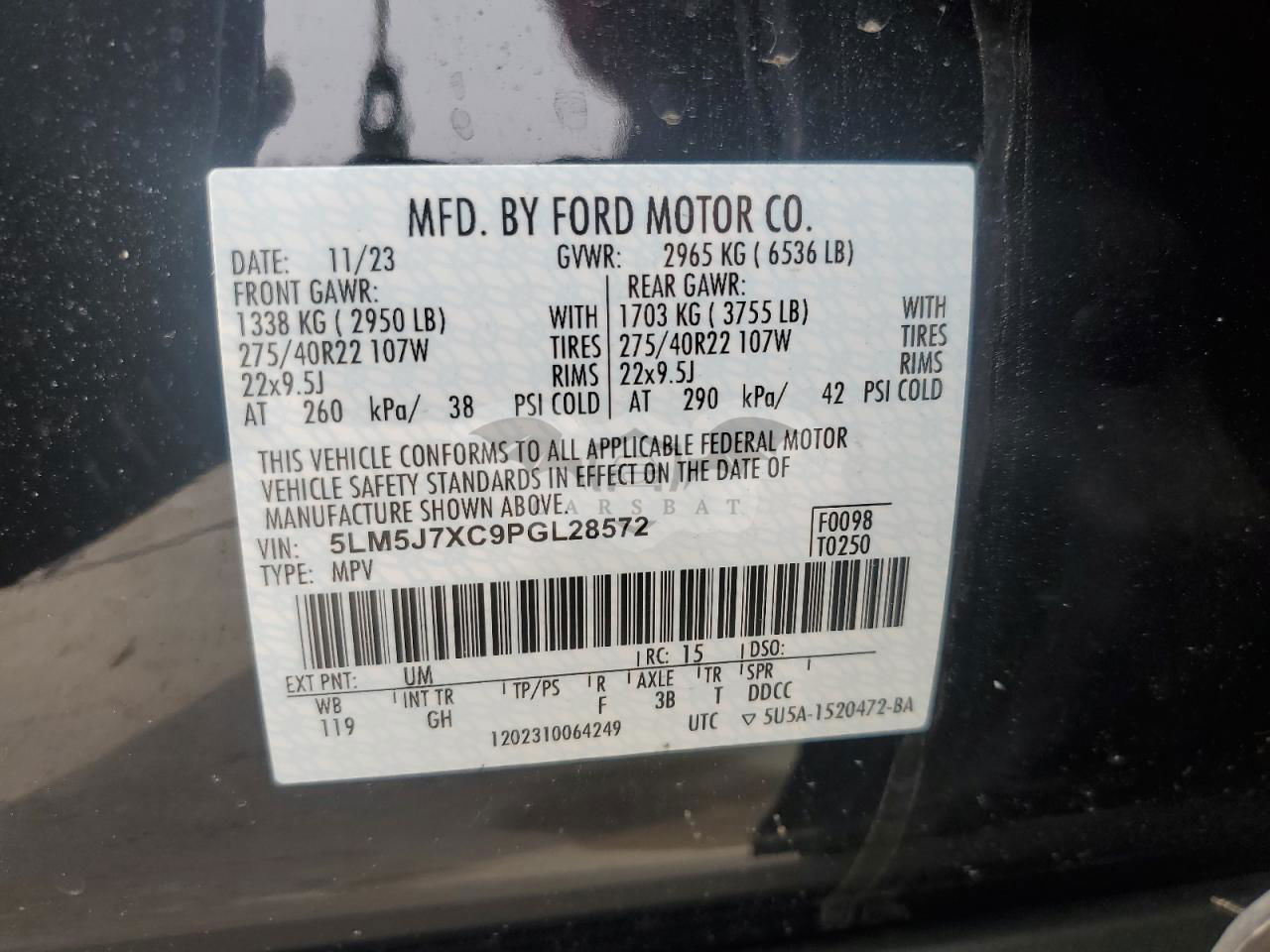 • VIN: 5LM5J7XC9PGL28572