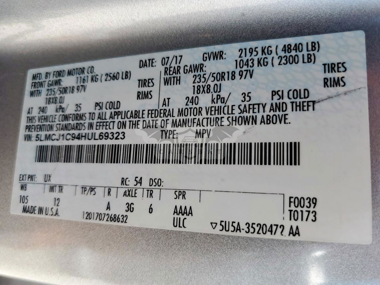 • VIN: 5LMCJ1C94HUL69323