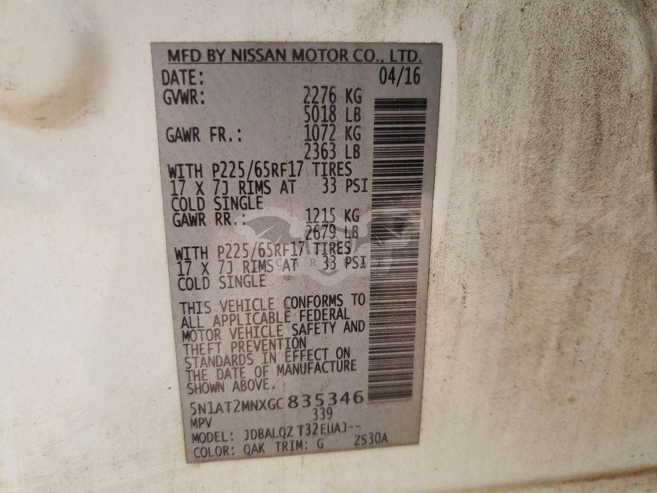 • VIN: 5N1AT2MNXGC835346