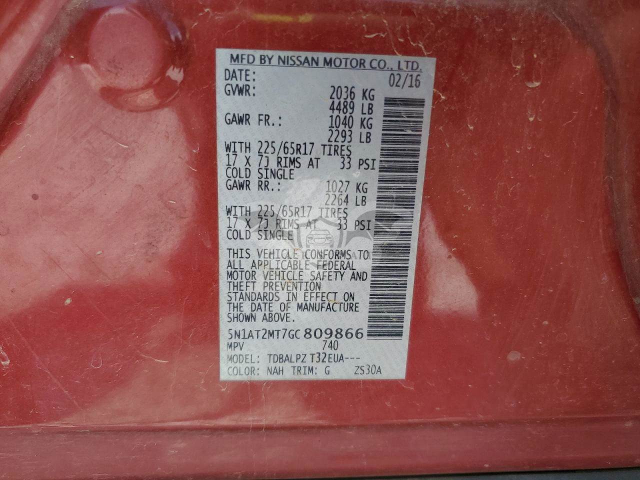 • VIN: 5N1AT2MT7GC809866