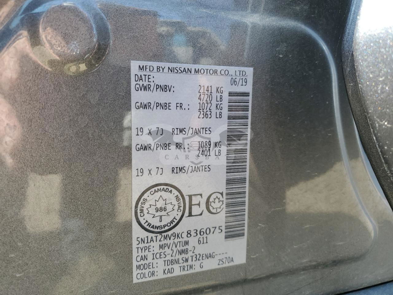 • VIN: 5N1AT2MV9KC836075