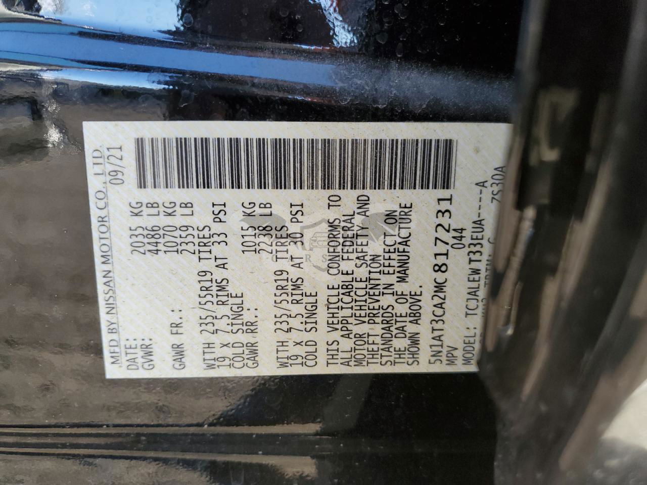 • VIN: 5N1AT3CA2MC817231
