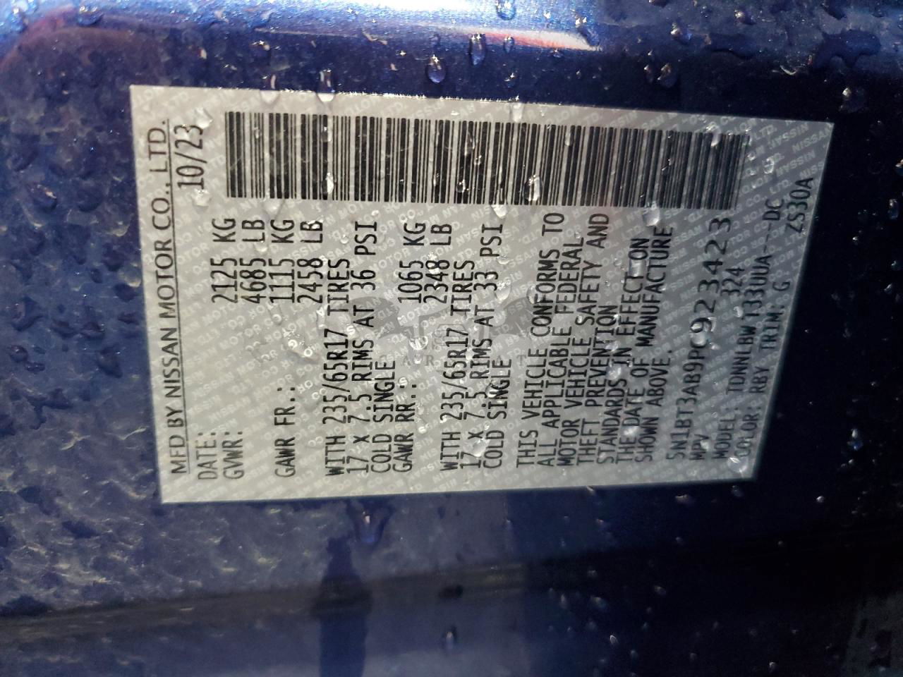 • VIN: 5N1BT3AB9PC923423