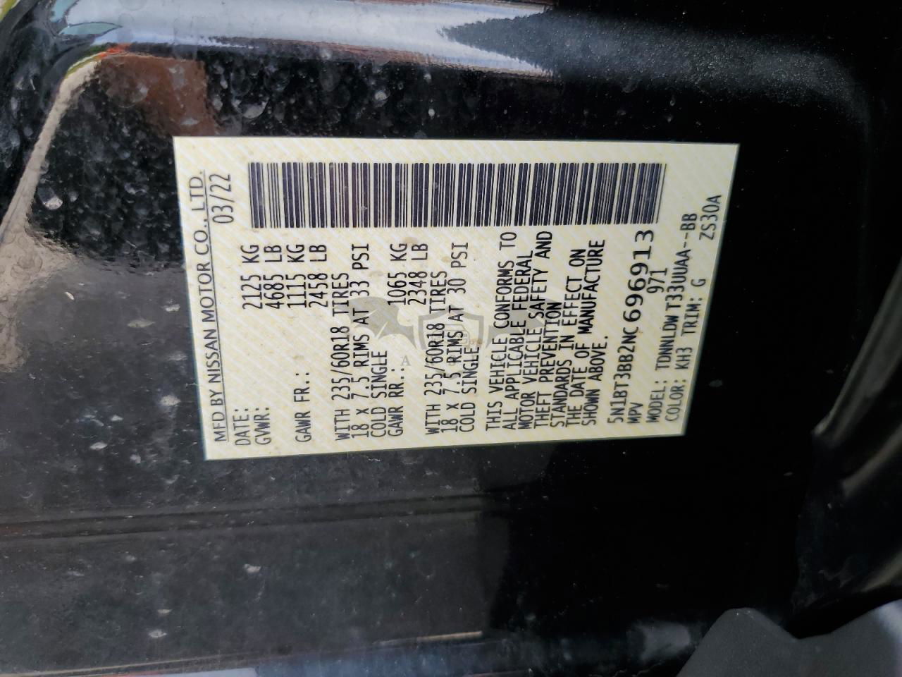 • VIN: 5N1BT3BB2NC696913