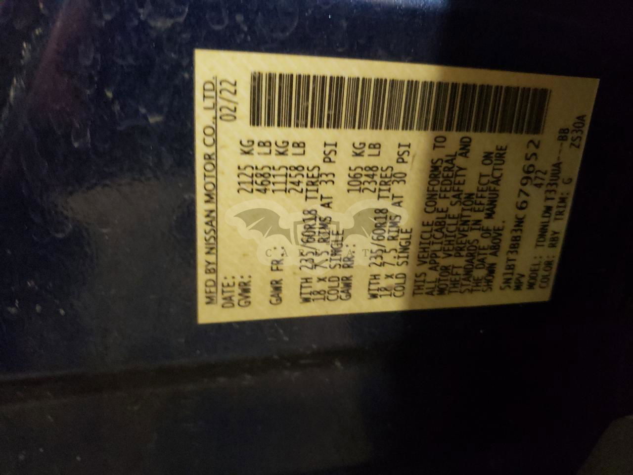 • VIN: 5N1BT3BB3NC679652