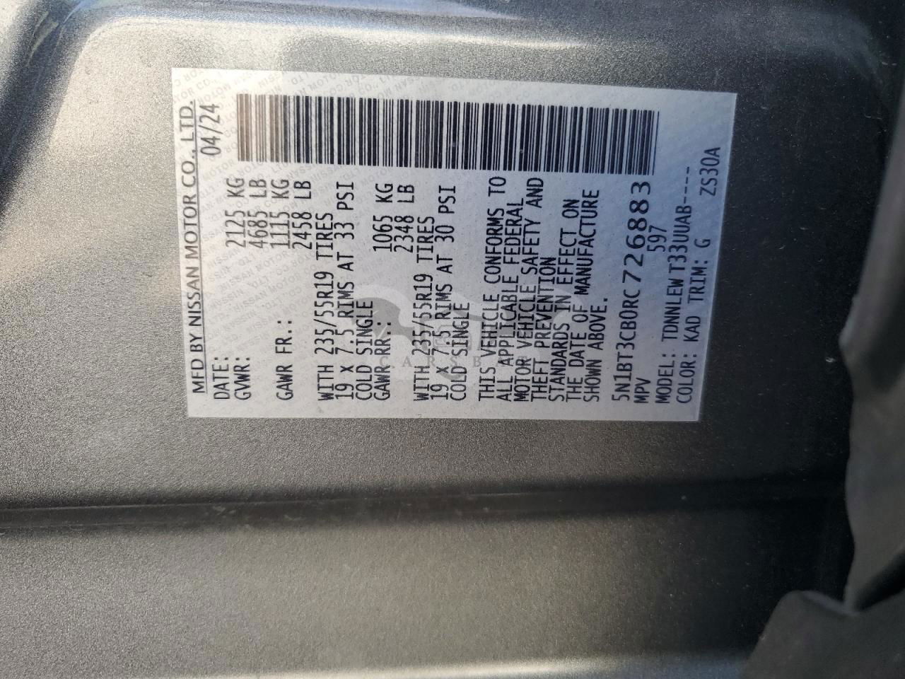 • VIN: 5N1BT3CB0RC726883