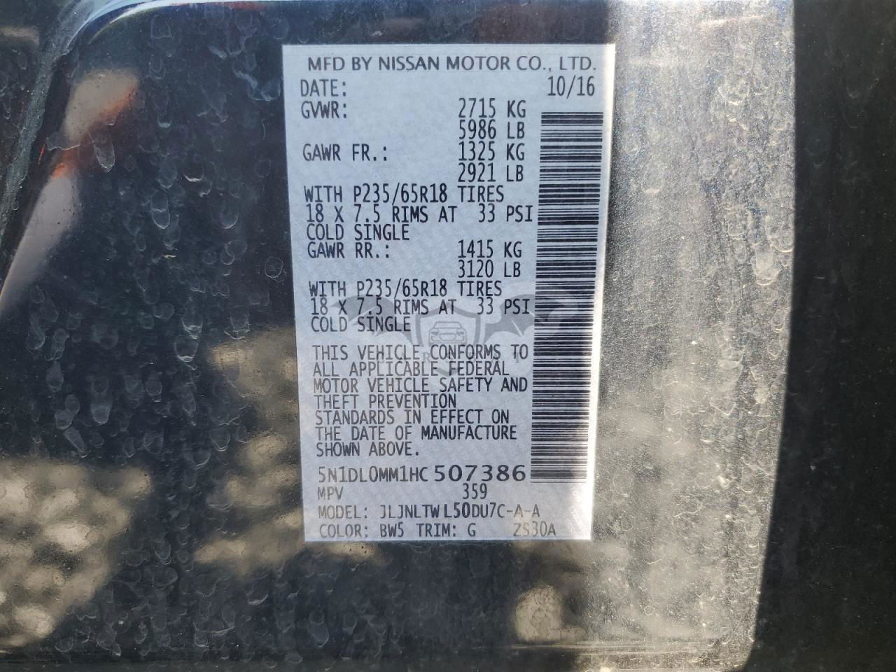 • VIN: 5N1DL0MM1HC507386