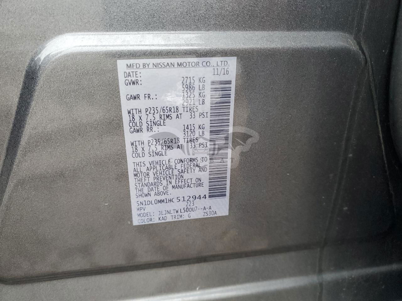 • VIN: 5N1DL0MM1HC512944