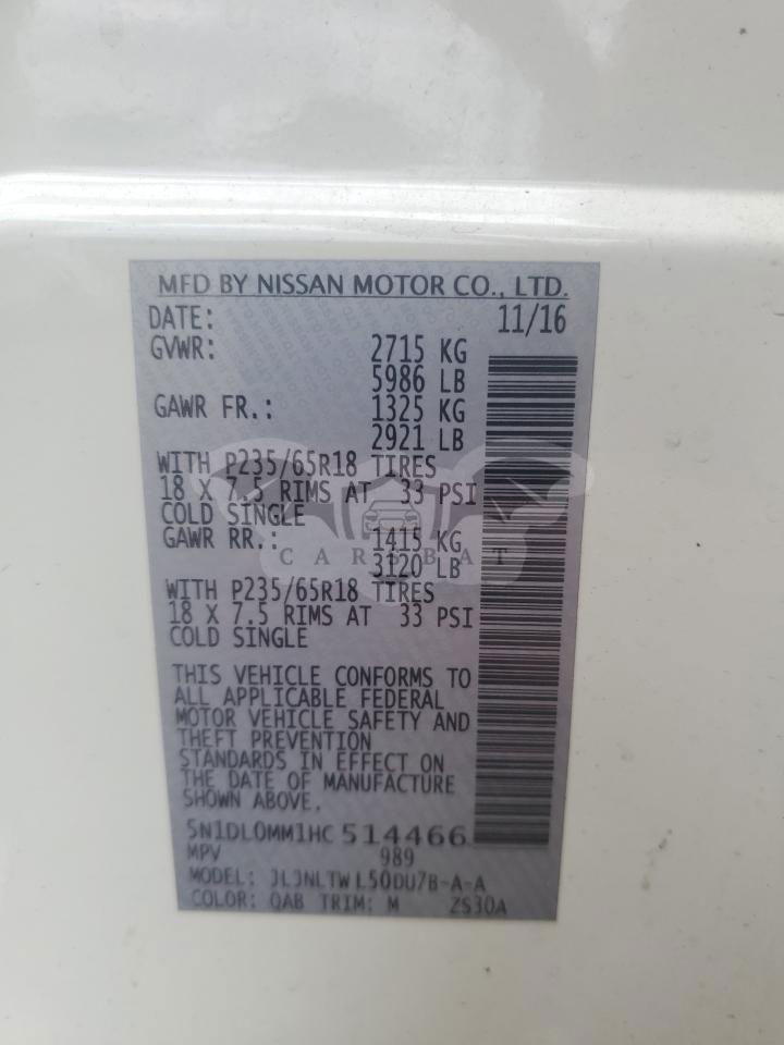• VIN: 5N1DL0MM1HC514466