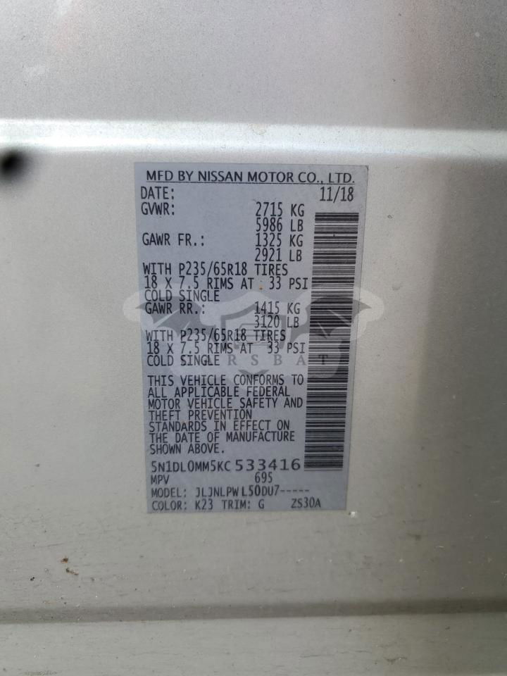 • VIN: 5N1DL0MM5KC533416