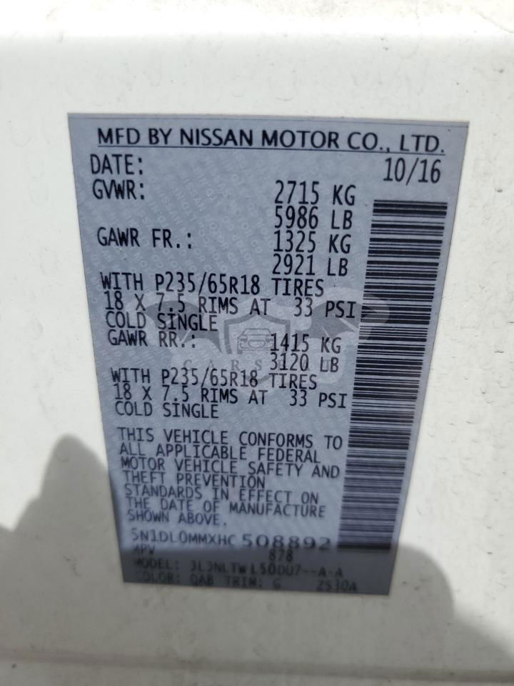 • VIN: 5N1DL0MMXHC508892