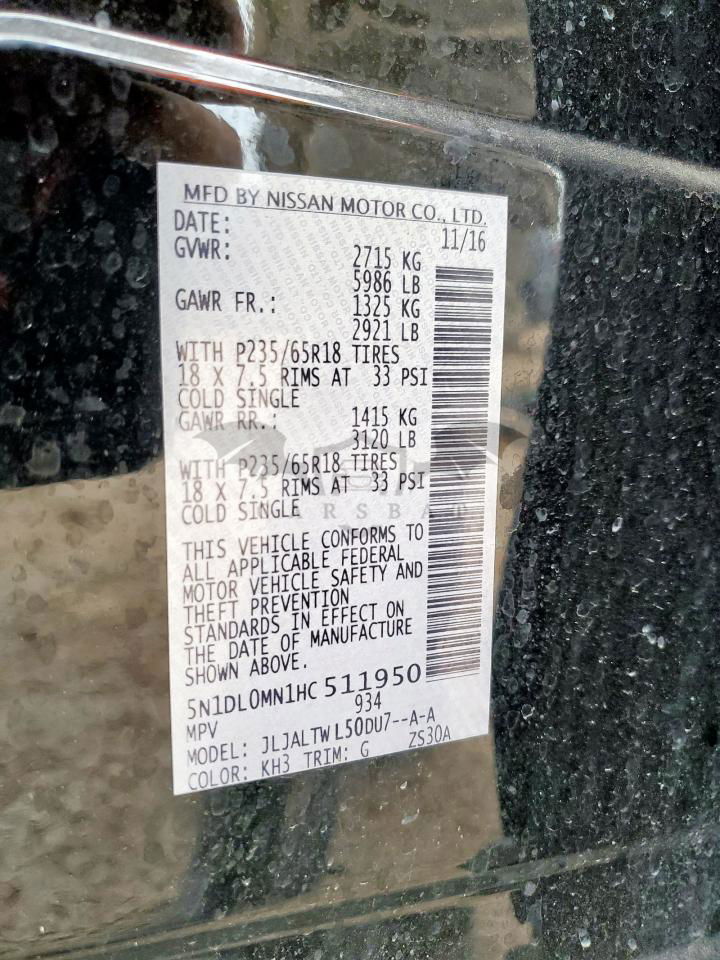 • VIN: 5N1DL0MN1HC511950