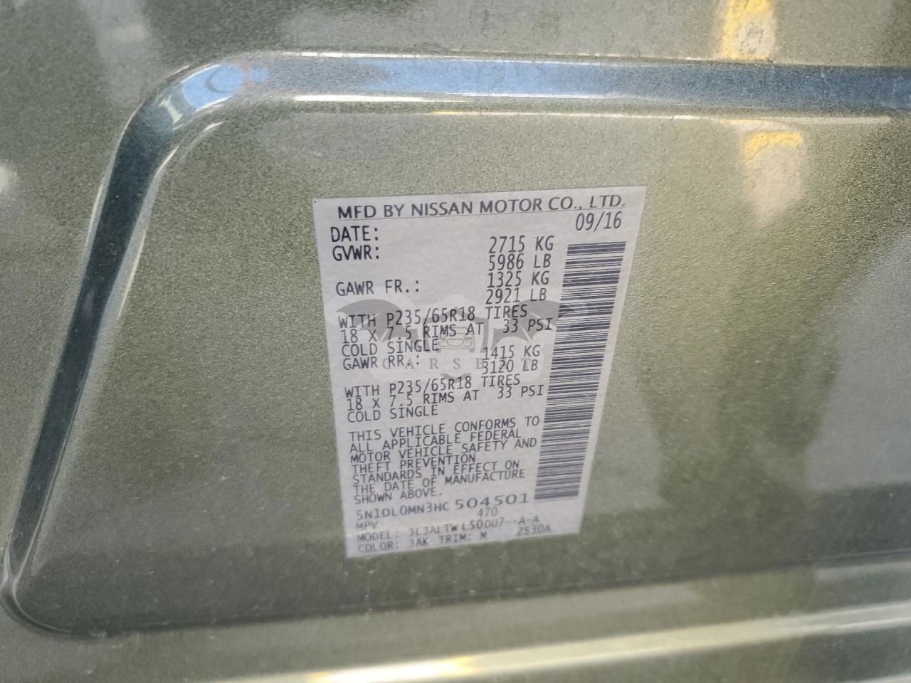 • VIN: 5N1DL0MN3HC504501