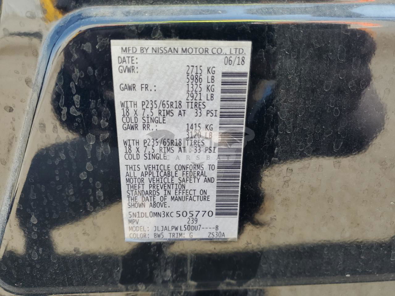 • VIN: 5N1DL0MN3KC505770