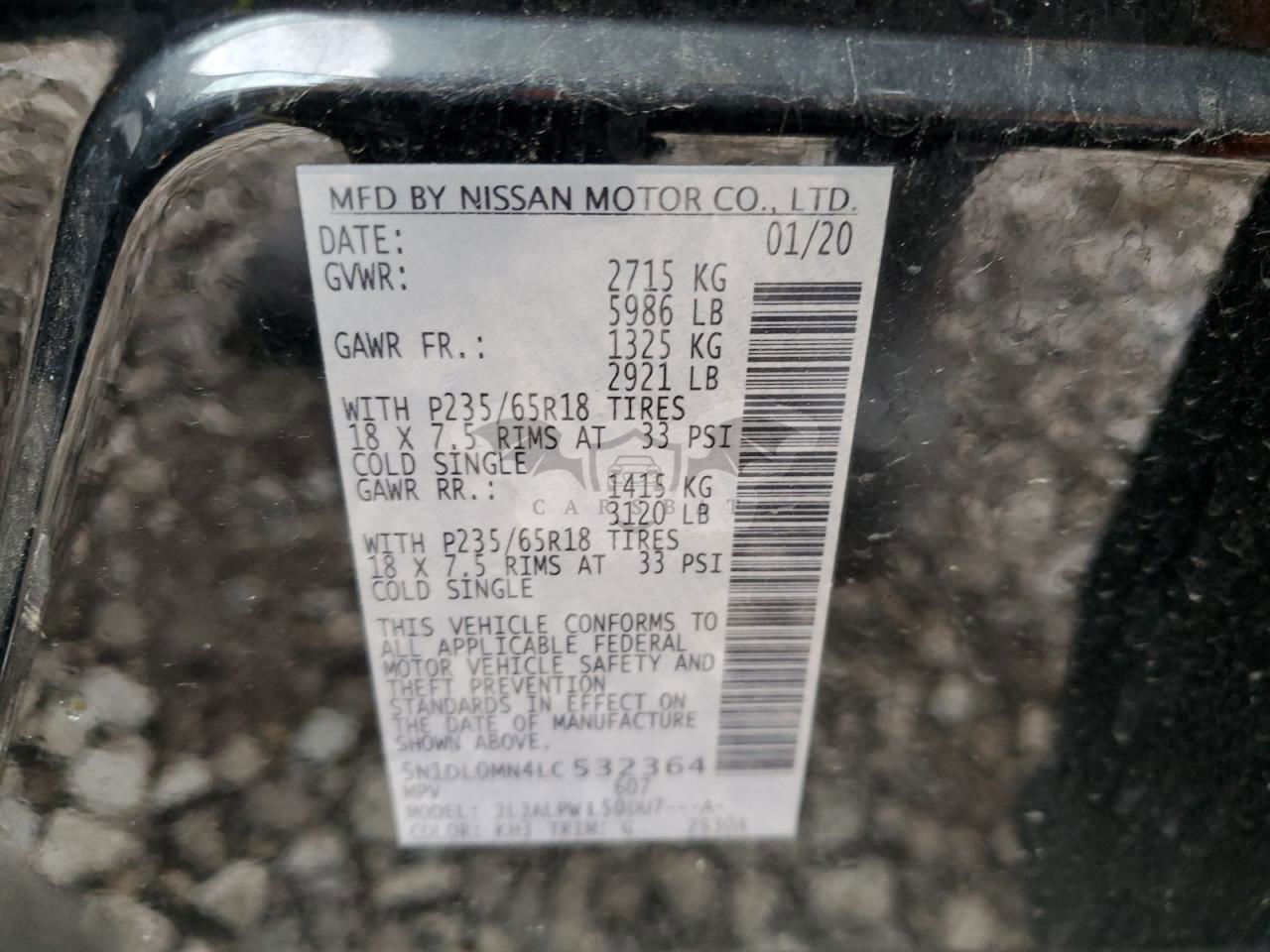 • VIN: 5N1DL0MN4LC532364