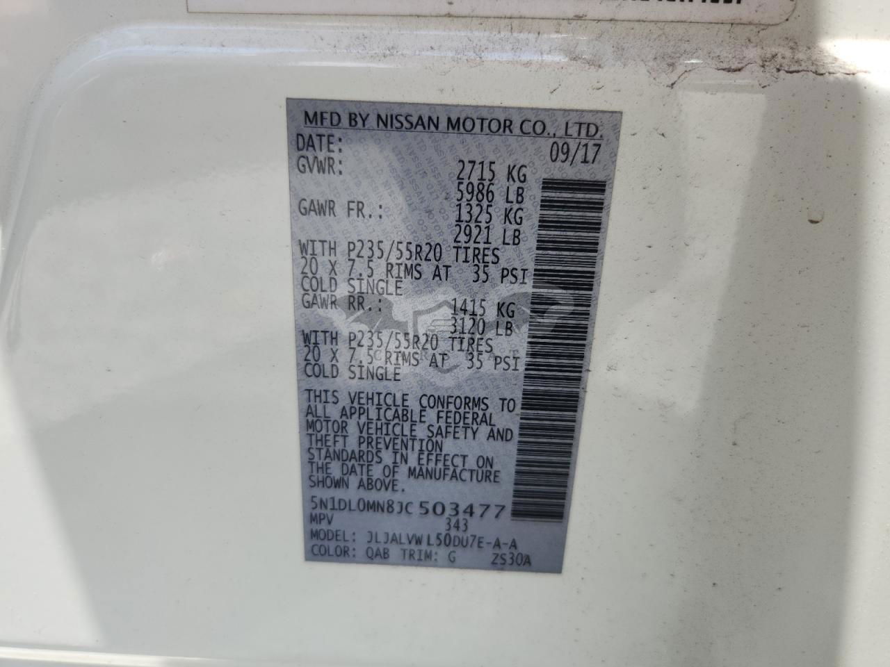 • VIN: 5N1DL0MN8JC503477