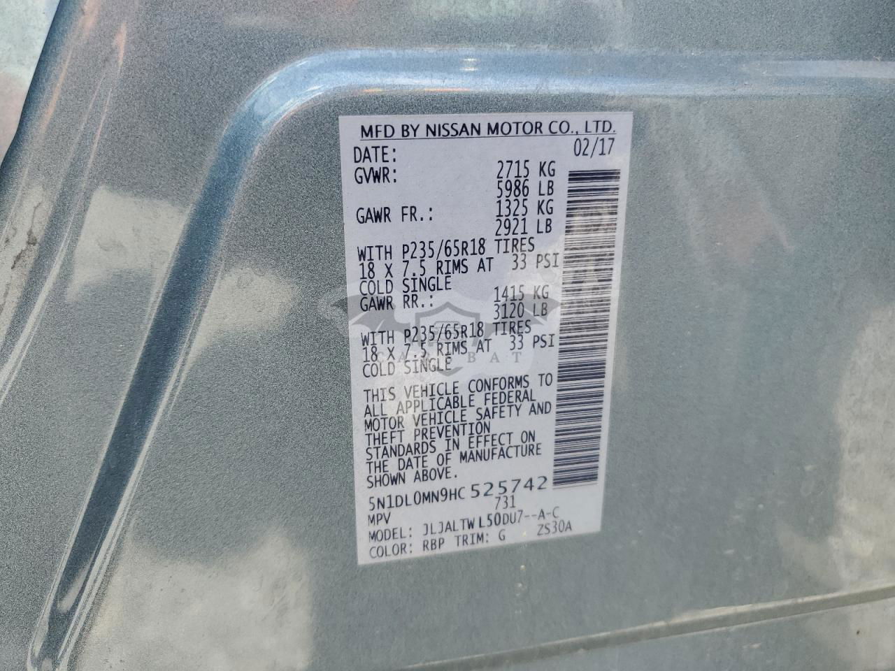 • VIN: 5N1DL0MN9HC525742