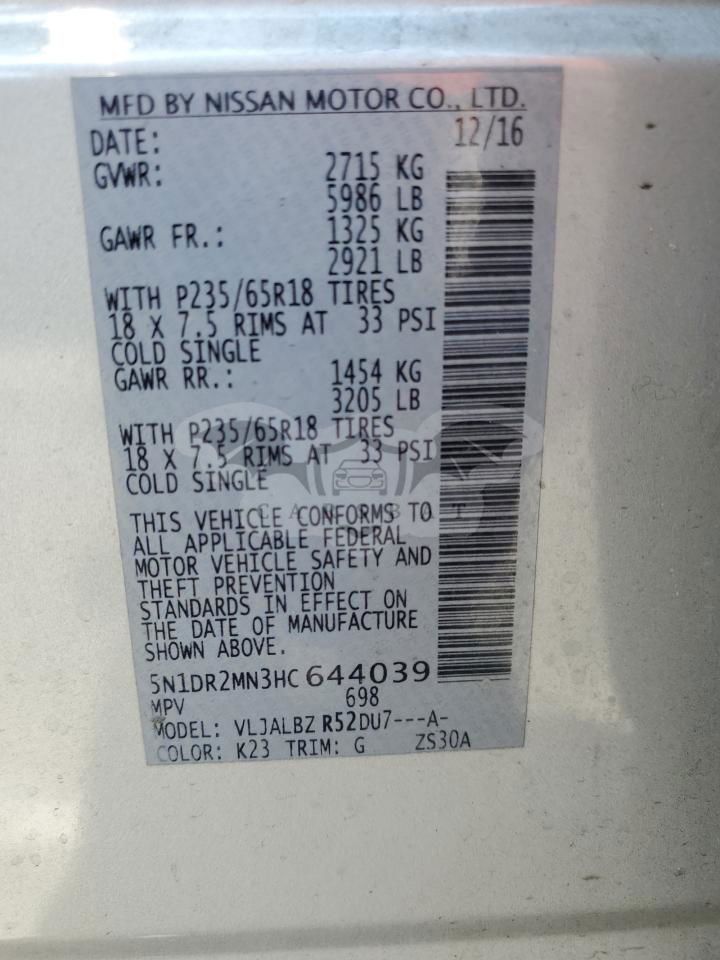 • VIN: 5N1DR2MN3HC644039