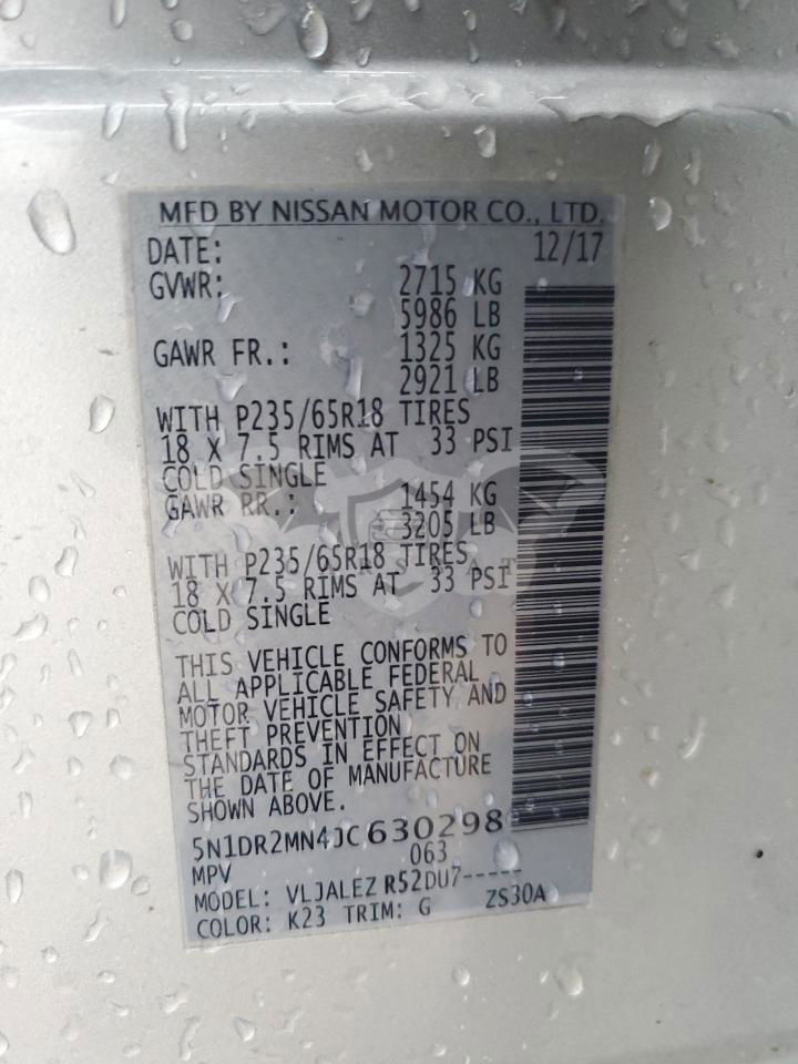 • VIN: 5N1DR2MN4JC630298
