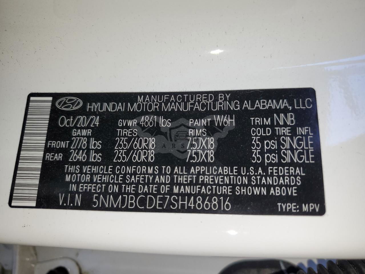 • VIN: 5NMJBCDE7SH486816