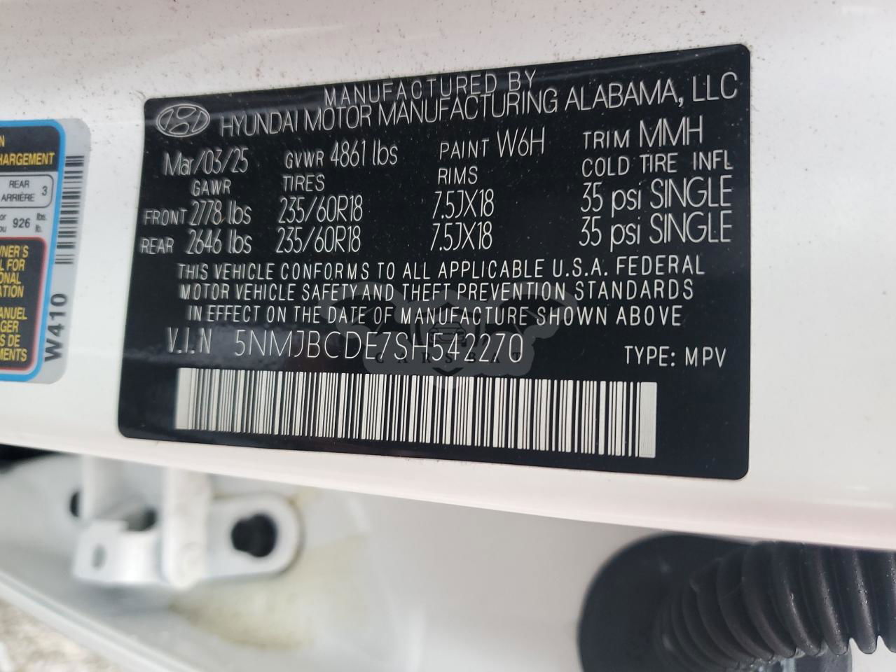 • VIN: 5NMJBCDE7SH542270