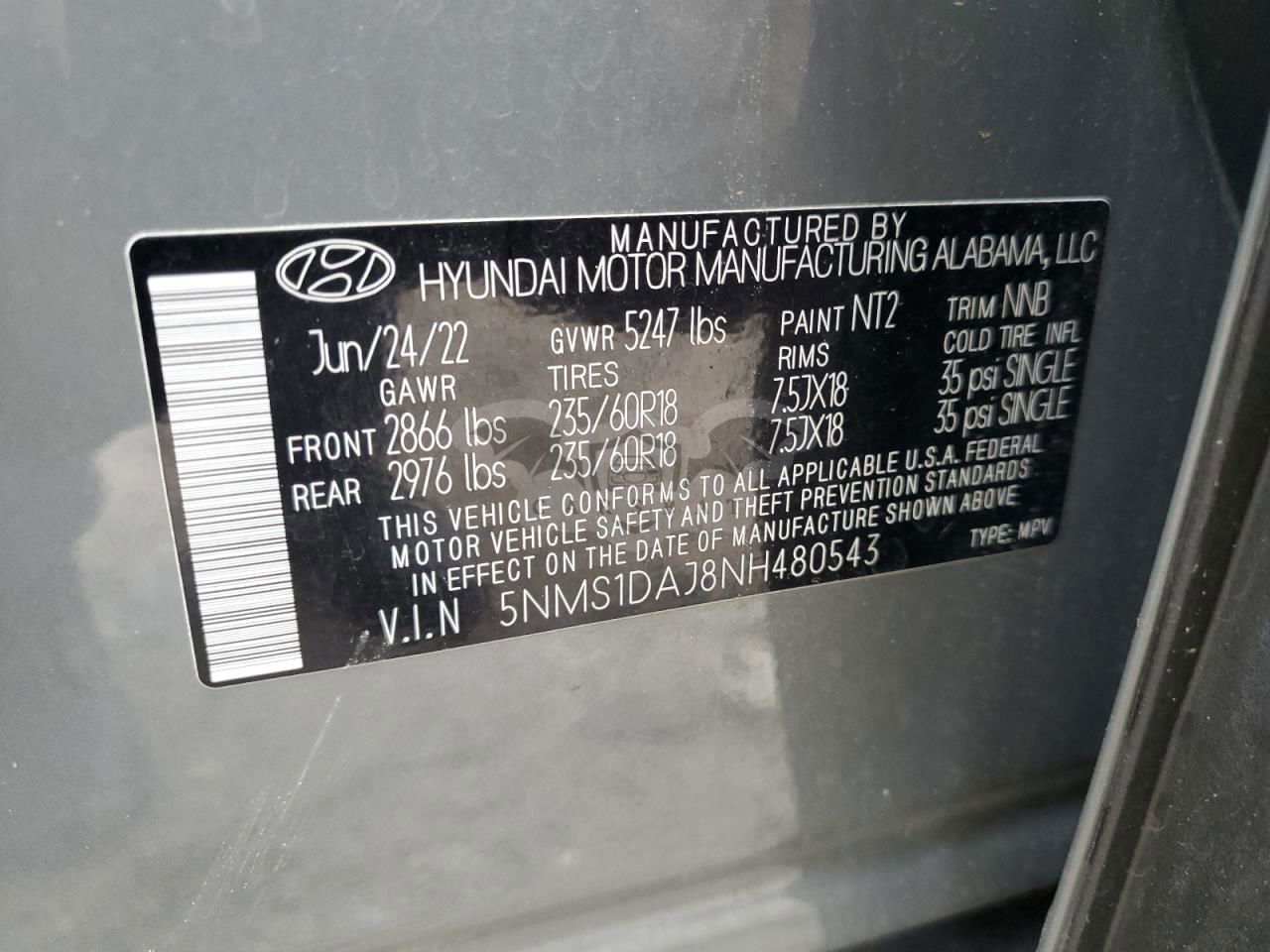 • VIN: 5NMS1DAJ8NH480543