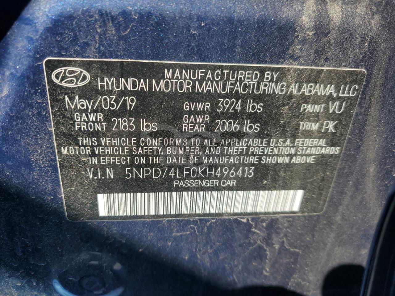 • VIN: 5NPD74LF0KH496413
