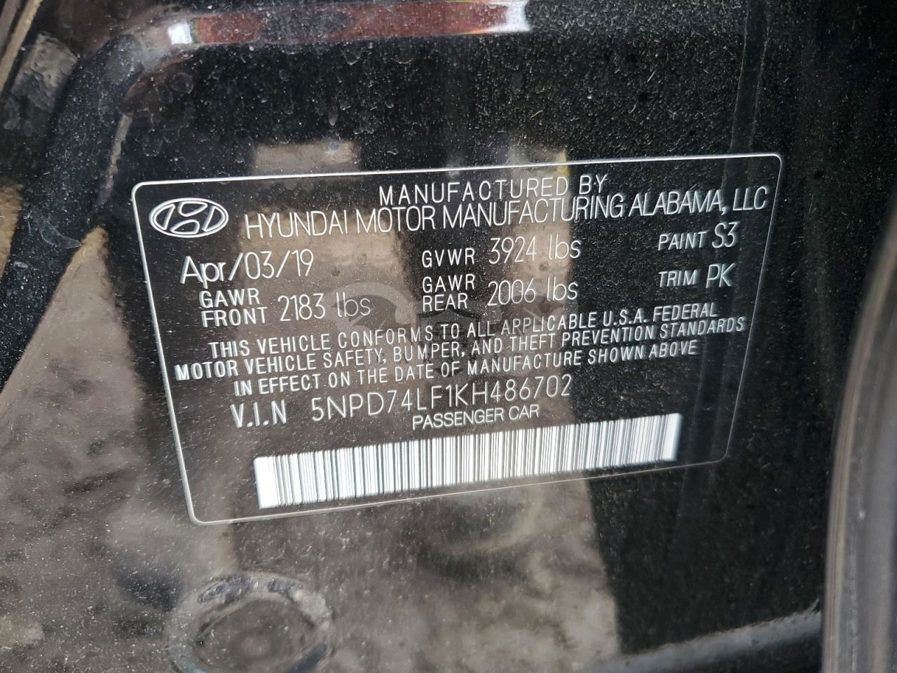 • VIN: 5NPD74LF1KH486702